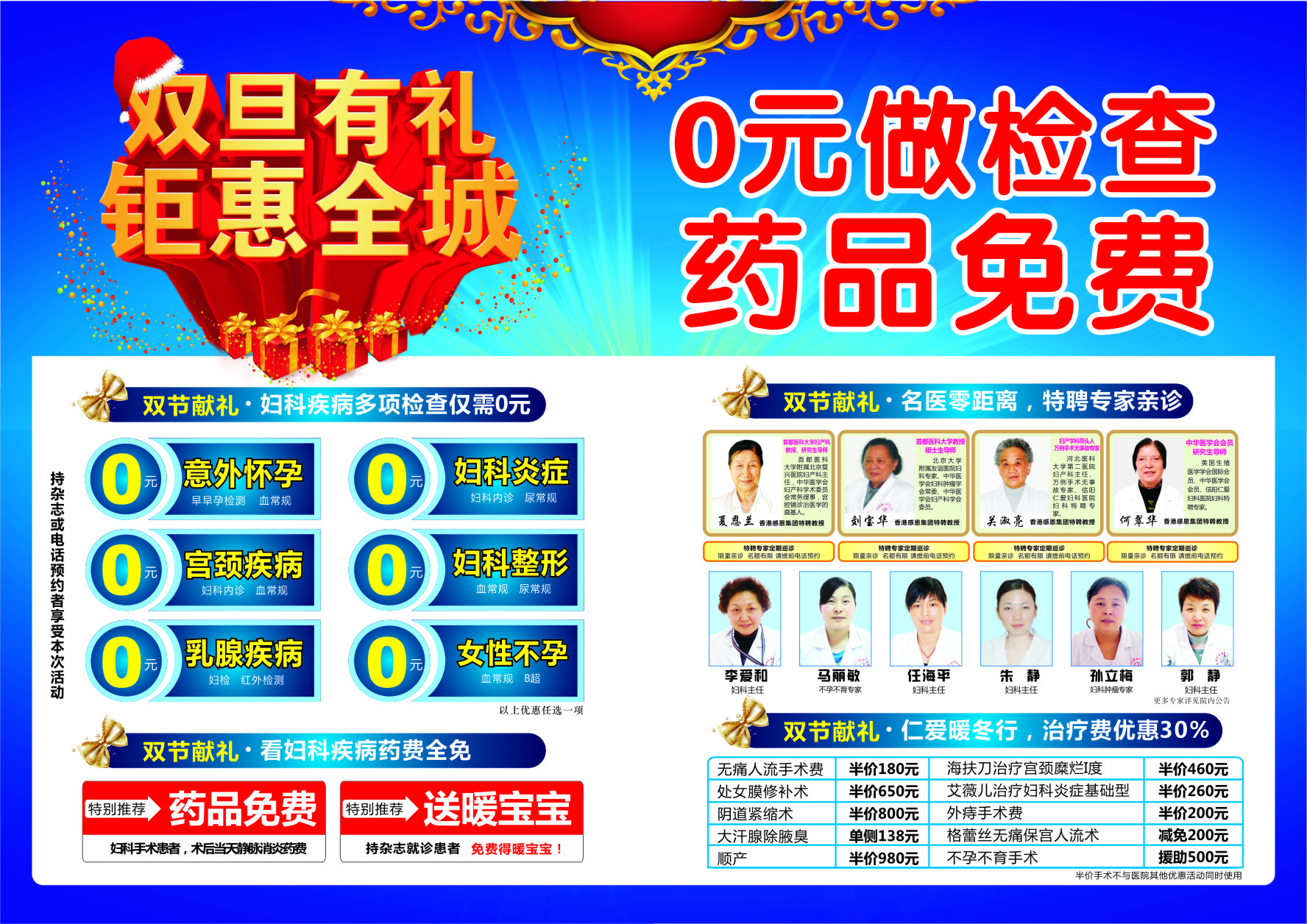 據悉,本次活動得到了國家有關部門的大力支持,活惠民項目多,減免力度大.參與活動可享受:意外懷孕、婦科炎癥、宮頸疾病、婦科整形、乳腺疾病、女性不孕等婦科 檢查0元,無痛人流半價180元,宮頸疾病治療費用600元,私密整形半價等更多優惠活動。